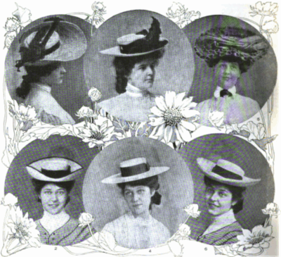 Some examples of earlier styles are below, typically wide-brimmed and often including many feathers and other decorations.