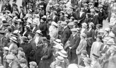 Nearly all women and most children wore hats outdoors. The main trend in the mid-1910s was that women’s hats were becoming much less elaborate, partly in response to the war.