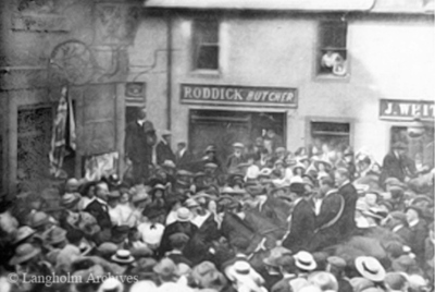 George Roddick (1867-1934) had a shop in Market Place, seen in the background below during the Common Riding in 1913.