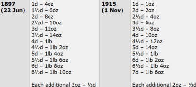 ‘Penny post’ ended in 1918 after 78 years when the cheapest rate was raised to a penny and a half because of war debt and inflation.