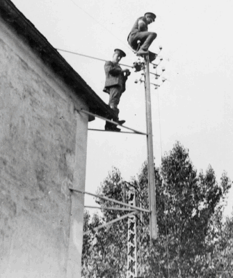 Repairing telegraph wires, Western Front, 1914