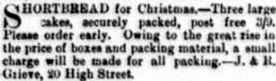 Similarly, constraints on sugar supplies led to the use of alternative sweeteners, such as honey, syrup and molasses. Robert Grieve (1865-1950) advertised in 1915 to try and obtain some bees to make more of his own honey. He already had four hives but production was down because of heather blight that year.