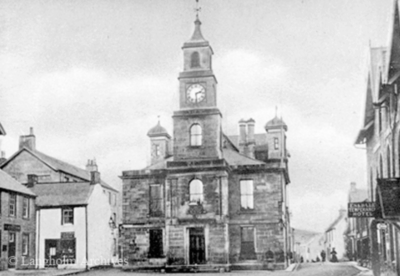 The town council, also known as the burgh council, met monthly in the burgh chamber of the town hall, on the first floor* in the photo below, to the right of the clock tower.