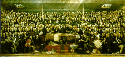 The Free Church was founded by a schism (‘the Disruption‘) in 1843 in objection to a system of patronage whereby many Church of Scotland ministers’ appointments were made by major landowners, sometimes against the wishes of congregations. About a third of the participants of the annual meeting of the General Assembly (the Church of Scotland’s highest entity) walked out, led by David Welsh and Thomas Chalmers, giving up their Church of Scotland careers, incomes and homes.