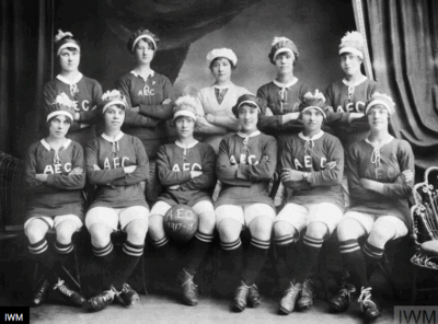 Women’s football became popular at munitions factories (see the Imperial War Museums‘ 9 Facts About Football In The First World War).