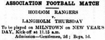 Langholm’s main ‘football’ sport was rugby, but it also had three Association Football teams (the term ‘soccer’ coming from ‘association’):