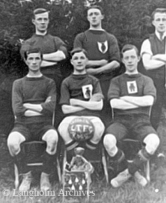 As with rugby, there were no football matches in the town in 1915. Prior to that, opponents included Hoddom Rangers, Canonbie, West Calder, London Road Athletic (Carlisle), Grosvenor College (Carlisle) and Border Wanderers (Longtown). An occasional match was played between Langholm Lodge and a Langholm town team. Home matches were played on the Duke of Buccleuch’s Milntown ground.