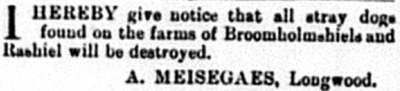 Mr Miesegaes, who was well-known over a wide area, came to reside at Longwood about thirty-five years ago. Possessed of a quiet and very kindly disposition, he took no active part in the public life of the town, but every good cause found in him a willing champion.