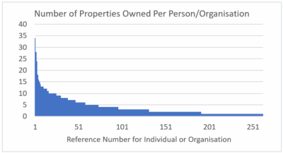 The majority of proprietors owned more than one property in the parish. The following chart excludes the Duke of Buccleuch (248 properties) and Rev David Maxwell (70).